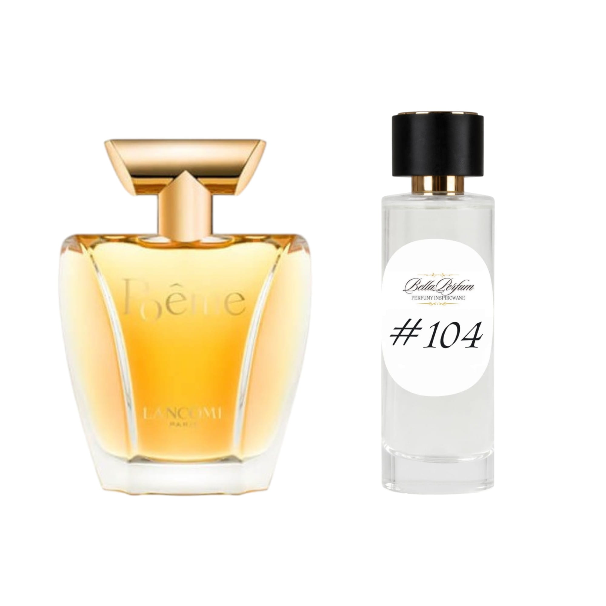 Bella Perfum Nr 104 to perfumy damskie inspirowane Lancome Poeme. Orientalno-kwiatowa kompozycja z 21% zaperfumowania w dużej butelce.