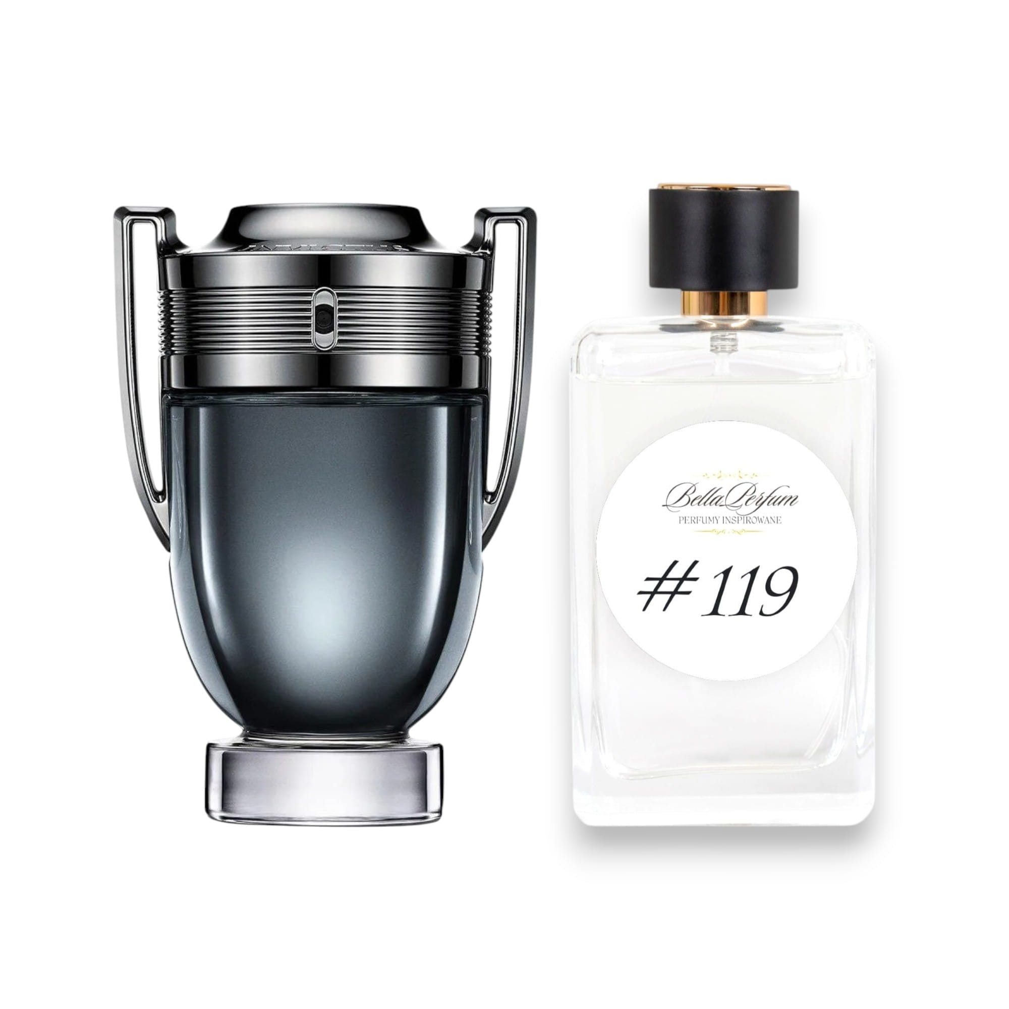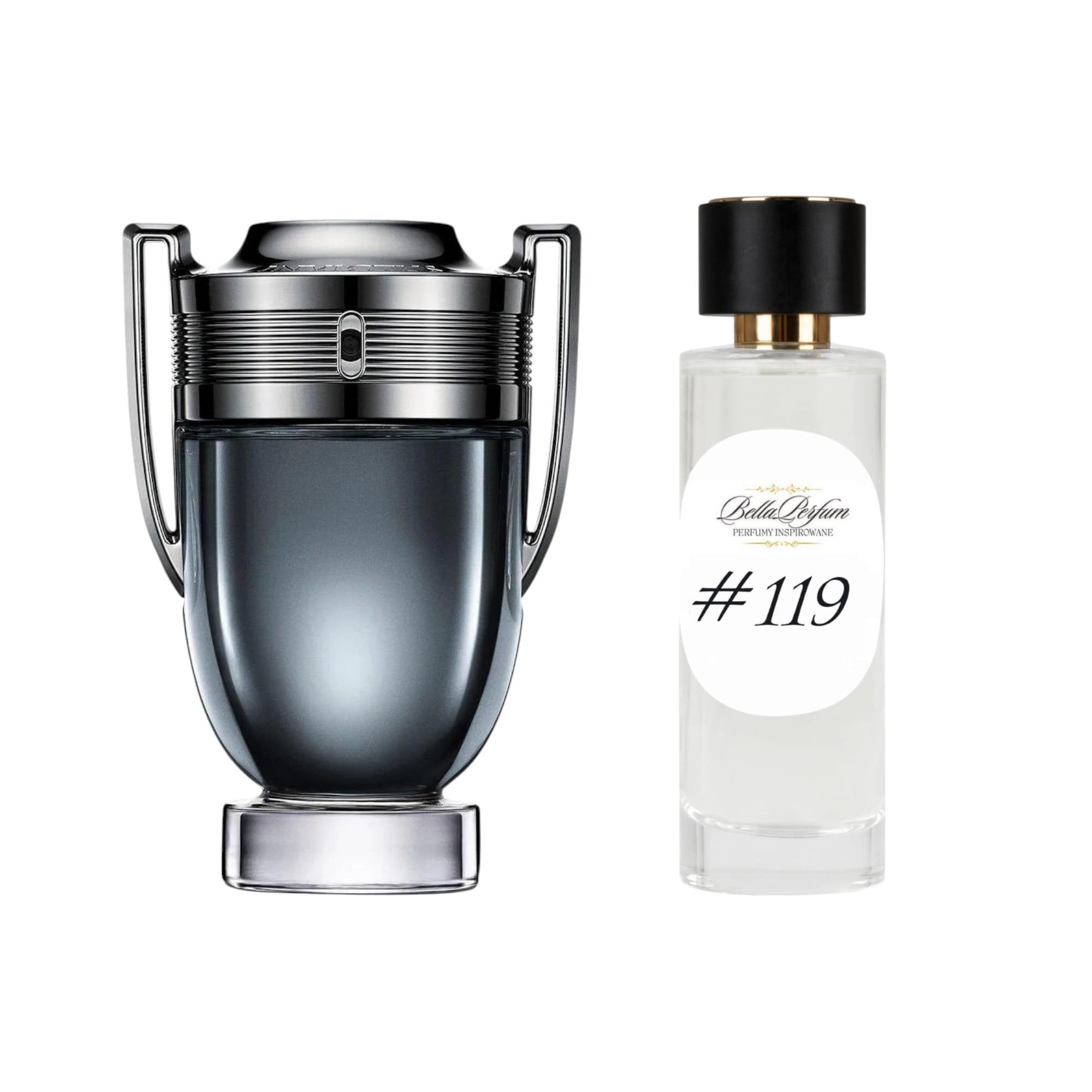Bella Perfum Nr 119 to perfumy męskie inspirowane Paco Rabanne Invictus Intense. Orientalno-aromatyczna kompozycja z 21% zaperfumowania w dużej butelce.