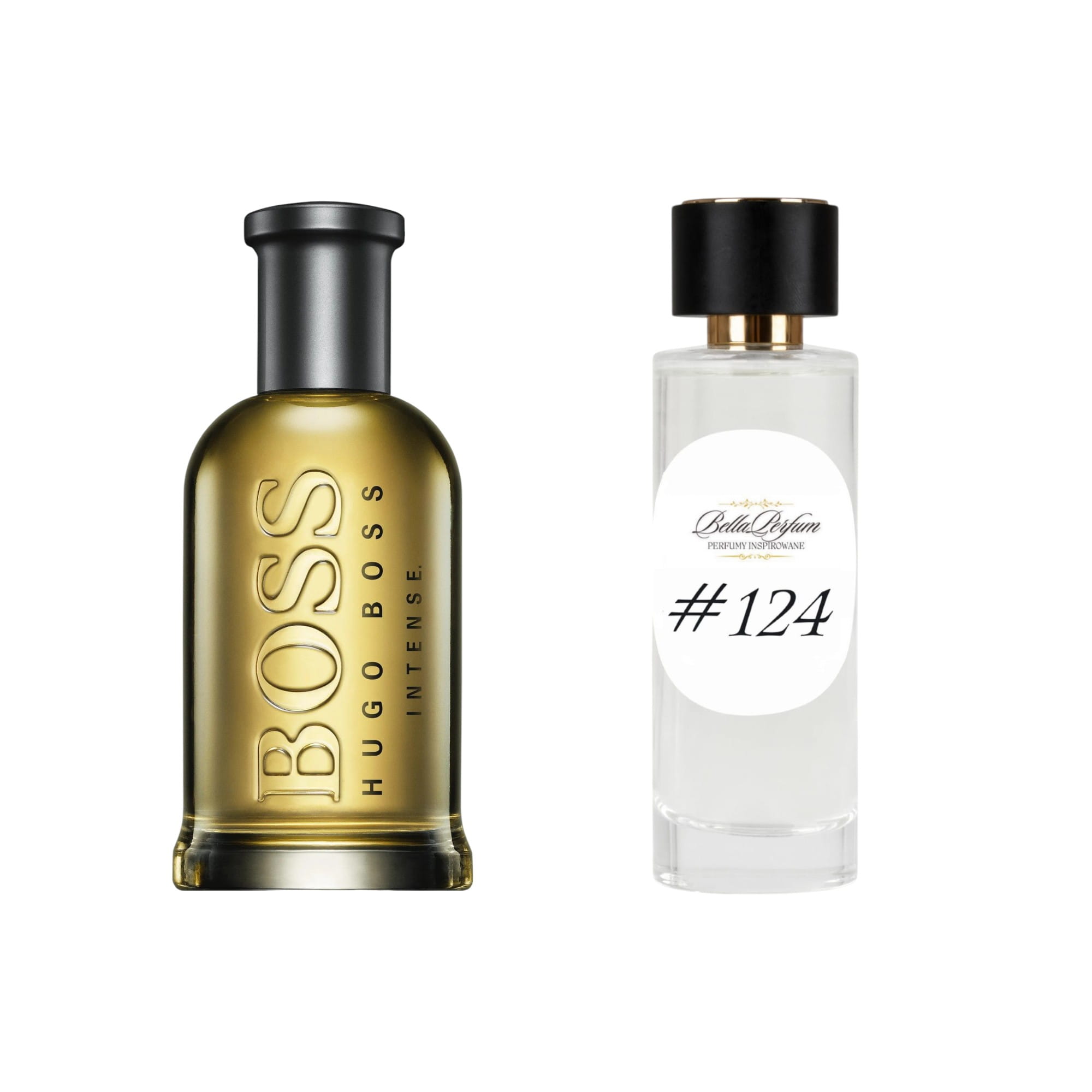 Bella Perfum Nr 124 to perfumy męskie inspirowane Hugo Boss Bottled Intense. Elegancka i przyprawowa kompozycja z 21% zaperfumowania w dużej butelce.