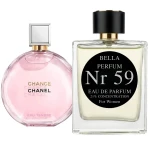 Bella Perfum Nr 59 to perfumy damskie inspirowane Chanel Chance Eau Tendre. Lekka kwiatowo-owocowa kompozycja z 21% zaperfumowania w dużej butelce.
