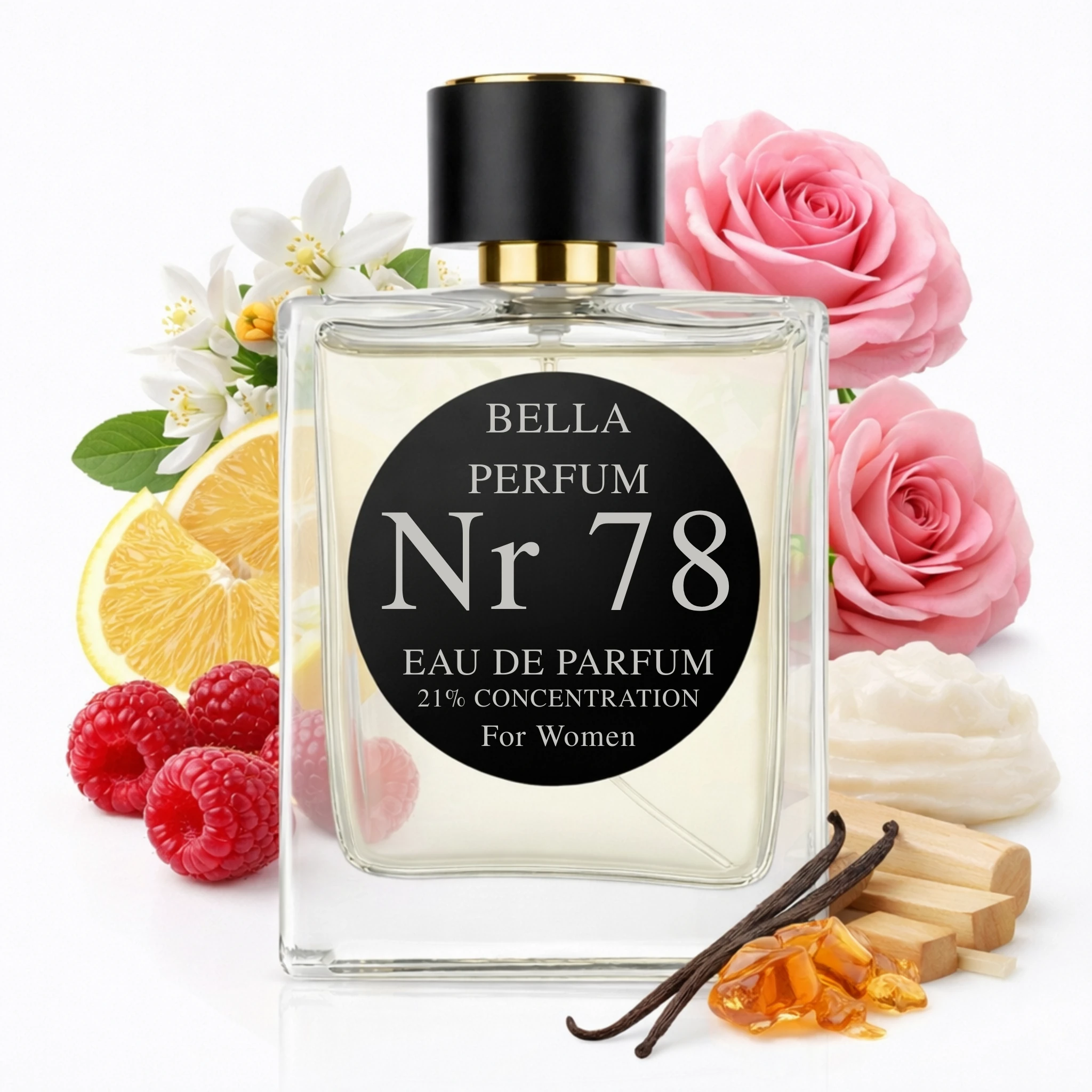 Bella Perfum Nr 78 to zapach, który łączy świeżość, romantyzm i elegancję – idealny wybór dla kobiet pewnych siebie i pełnych wdzięku.